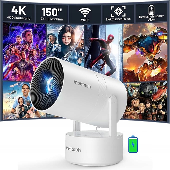 Mini projektor Mentech X3 4K WiFi6 BT5.2 Android LED 150″ Domácí kinoPopis produktuSeznamte se s Mini Projektorem Mentech X3 – kompaktním zábavním centrem, které promění každý večer v filmový zážitek! Díky vestavěné baterii, připojení WiFi 6 a Bluetooth 5.2 a plné kompatibilitě s chytrými telefony a notebooky můžete sledovat své oblíbené filmy, seriály a zápasy kdekoli – bez kabelů a omezení.Tento moderní projektor se systémem Android zajišťuje jednoduché ovládání, rychlé připojení a výjimečnou kvalitu obrazu Full HD. Ideální pro dům, cestování, zahradu nebo karavan.Hlavní vlastnosti produktu:Vestavěná baterie 2600 mAh – až 2 až 3 hodiny provozu bez napájení.WiFi 6 5G/2.4G + Bluetooth 5.2 – stabilní připojení a rychlý přenos obrazu.150palcový obraz v kvalitě 1080P Full HD – křišťálově čistý obraz a kontrast 14 000:1.Nastavitelný úhel 270° a automatická korekce lichoběžníkového zkreslení – ideální obraz z jakékoli polohy.Široká kompatibilita – HDMI, AV, USB, podpora telefonu, konzole, notebooku a televizního tuneru.Trvalá LED dioda (300 000 h) – energeticky úsporná a bezpečná pro zrak i dětí.Systém Android – možnost instalace streamovacích aplikací přímo do zařízení.Vezměte si své kino kamkoliv – do zahrady, na dovolenou, do karavanu nebo pod stan.Mentech X3 je kombinací výkonu, mobility a moderního designu.Sledujte po svém – vždy a všude!