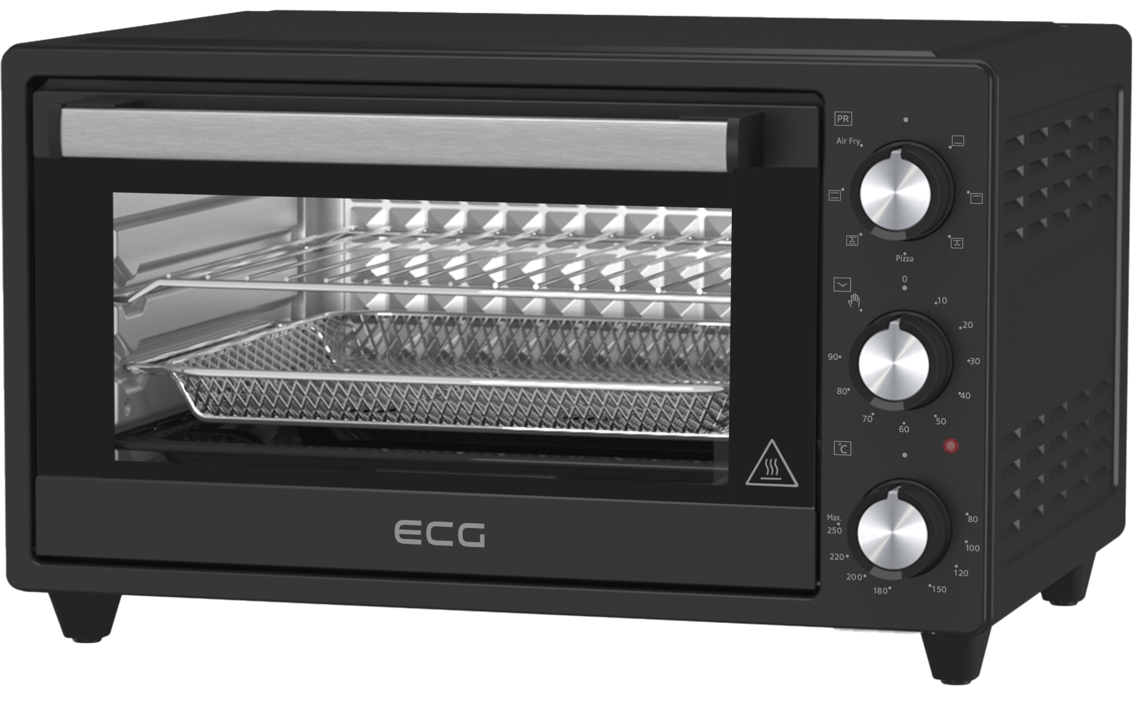 ECG ET 2001B Airfry Programy Grilování s cirkulací: Horní ohřev: Horní + dolní ohřev: Dolní ohřev: Vlastnosti Vnitřní objem 20 l 7 přednastavených funkcí: Warm, Broil, Grill, Toast, Bake, Convection, AirFry Jednoduchá obsluha pomocí 3 ovládacích prvků Výklopné otevírání dvířek Elegantní antracitově černý design Časovač s možností nastavení až na 90 minut Nastavitelná teplota (80 až 250 °C) Praktické osvětlení vnitřního prostoru Kvalitní kovové provedení a galvanizovaný vnitřek Bezpečnostní dvířka s dvojitým sklem Užitečné příslušenství součástí balení (čtvercový plech na pečení, rošt, podnos na drobky, stojan na horkovzdušné fritování) Elektrické napájení (z klasické zásuvky) Rozměry 38 × 43,5 × 26,5 cmDodávané příslušenství Rošt Pečicí plech Podnos na drobky Stojan na horkovzdušné fritováníTechnické parametry Objem: 20 l Příkon: 1500 W Výška: 26,5 cm Šířka: 43,5 cm Hloubka: 38 cm Kontrola času: 90 min Grilování s cirkulací: Ano Kontrola teploty: Ano