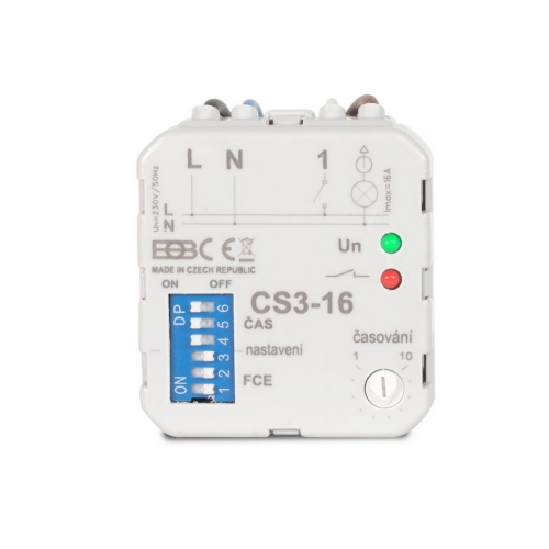 Multifunkční časové relé ELEKTROBOCK CS3-16 se používá pro ovládání odporové (žárovky) a indukční zátěže (ventilátory) s možností montáže pod vypínač, spínacím prvkem je silové relé 16 A. Specifikace multifunkčního časového spínače ELEKTROBOCK CS3-16, 0137 Multifunkční…