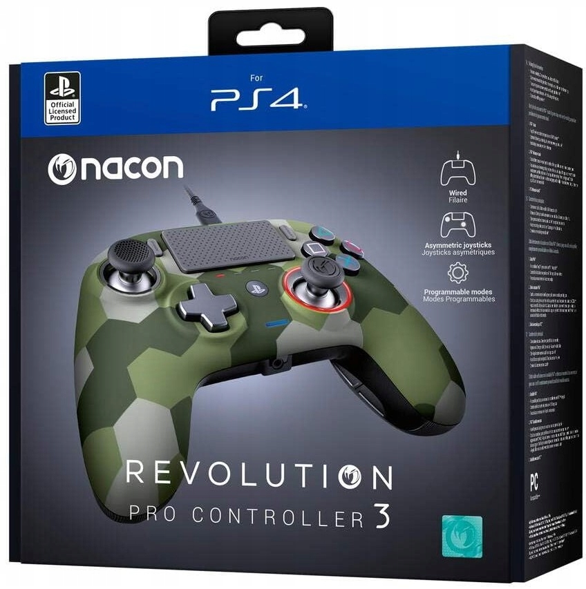 NACON PS4 Pad Sony Revolution Pro Controller 3 Camo ZelenáREVOLUTION Pro Controller 3 je nový kabelový ovladač vytvořený pro eSports na PlayStation®4 (PS4 ™).Licencováno společností Sony Interactive Entertainment (SIE).LICENCE: SONYKabelové připojení pomocí USB-C kabelu (délka 3 m)Tlačítko HOME/ SHARE/ OPTIONSDotykový panelDalší 4 funkční tlačítka (S1 / S2 / S3 / S4)*Dvě přizpůsobitelné tyče s amplitudou 46 °Tlačítka směru (4* nebo 8 směrů). )Sluchátkový konektor 3,5 mm pro audio a chatLED indikátor stavu hráčeZvýšená amplituda naklápění analogových knoflíků o 46 stupňů doleva a dopravaMěněná hmotnost díky závažím – 6 druhů: 2x10g, 2x14g, 2x17gTexturovaná povrchová úprava krytu ovladačeV balení je pevné pouzdroKompatibilní s počítačovými hrami v PC Advanced Mode ***Vyžaduje Windows 7/8/10 PC a připojení k internetu** Režim PC Advanced nebyl testován ani schválen společností Sony Interactive Entertainment.Pokročilé režimy*Mapování tlačítekNastavte křivku reakce každého prutuNastavte citlivost každého spouštěčeNezávisle upravujte intenzitu vibračních motorůZměňte podsvícení kolem pravé tyče a dosáhněte tak nestandardního vzhleduOblast živého testováníStáhněte si a sdílejte profily na www. oncongaming. com* Windows® 7/8 / 1O PC nebo macOS X (El Capitan), macOS 10.12 (Sierra) macOS 10.13 (High Sierra), mac OS 10.14 (Mojave) a požadované připojení k internetu, pro stažení softwaru je nutná registrace.** Režim PC Advanced nebyl testován ani schválen společností Sony Interactive Entertainment.