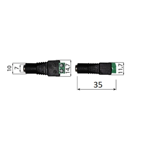 Jet konektor, typ zásuvka. Použijte například na přívodní kabely jednobarevného LED pásku. S jet konektorem typu vidlice připevněnému k napájecímu zdroji pak můžete vytvořit rychlý a spolehlivý rozebiratelný spoj. Nepřekračujte proud 3. A. souosý konektor 5,5mm