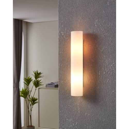 Nástěnné svítidlo ZOLA je vyrobeno z kovu a podlouhlého těla z opálově matného skla ve tvaru trubice. Bílé nástěnné svítidlo se svou délkou 39 cm bez problémů zapadne do moderního zařízení a nabízí optimální osvětlení…