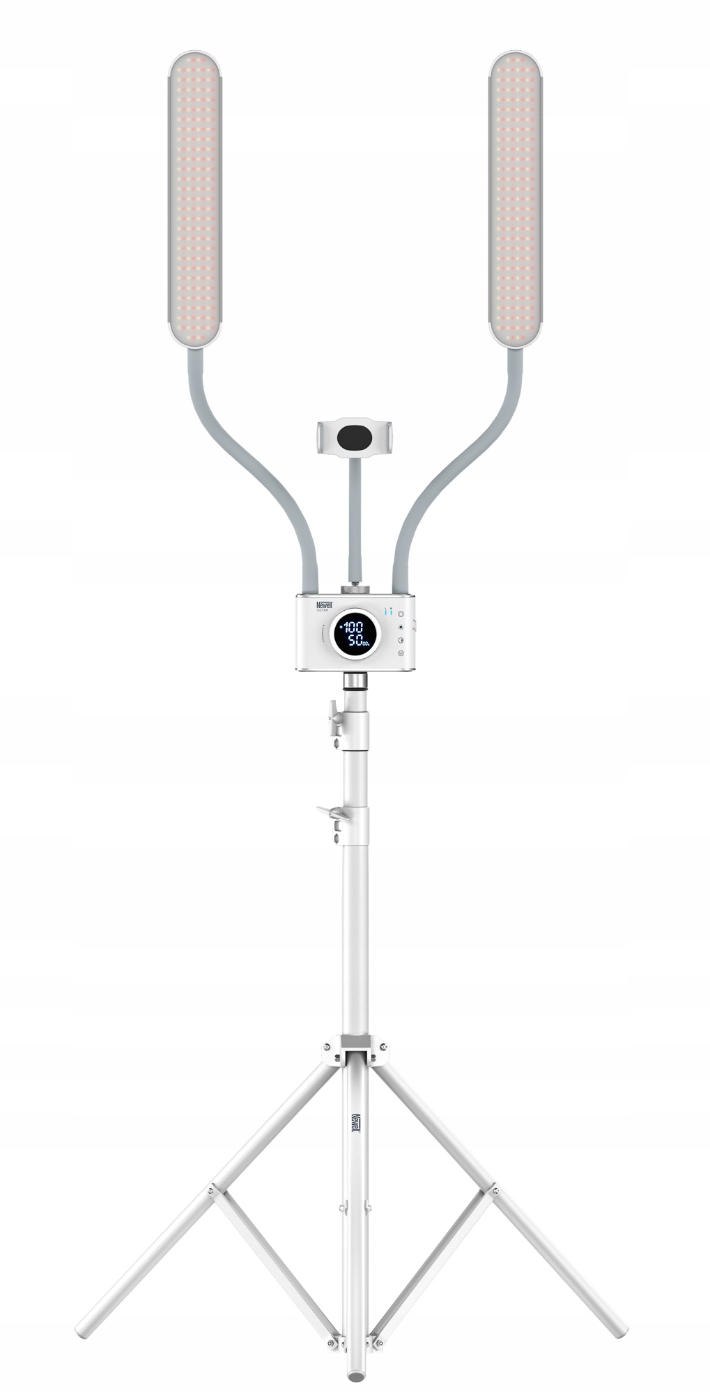 unikátní dvojitá LED lampa v sadě se stativem a držákem na smartphoneumožňuje stabilní a pohodlné nahrávání vlogů, TikToků nebo reelsosvědčený zdroj světla pro osoby, které vedou živé přenosy nebo streamujíideální volba pro beauty průmysl – zajišťuje profesionální osvětlení pro stylisty a stylistky řas, vizážisty, vizážistky, tatéry a tatérkyLED panely umístěné na flexibilních ramenechumožňuje nastavení světla z různých stran, zajišťující dokonalé osvětlení obličeje nebo objektůregulace parametrů jasu a teploty barev – dohromady nebo zvlášť pro každý LED panelregulace teploty barev – od 3200 K do 5600 Kplynulá regulace jasu umožňuje precizní nastavení intenzity světlavestavěný USB port umožňující nabíjení smartphonu nebo napájení dalšího zařízeníideální volba během dlouhých nahrávacích sezenív sadě dálkové ovládání umožňující vzdálené ovládání parametrů světladálkové ovládání nabízí až 20 metrů dosahuv sadě dodatečný diskrétní Bluetooth ovladač (vzdálené spouštění závěrky fotoaparátu nebo nahrávání)držák na telefon umístěný centrálně mezi ramenyLED panely umožňují získat efekt „charming eyes“ – subtilní odlesky v očích, které dodávají hloubku pohledu a přitahují pozornost divákůstabilní stativ s teleskopickou regulací výšky (od 84 cm do 200 cm)dotykový panel ovládání s podsvíceným displejemintuitivní ovládání a pohodlná kontrola parametrů, jako je jas a teplotasolidní konstrukce a ergonomický design navržený s ohledem na pohodlnou prácikomfort práce a mobilita – snadná obsluha, kompaktní konstrukce umožňující práci v salonu i mimo nějKompletní sada pro nahrávání TikToků, vlogů a streamů