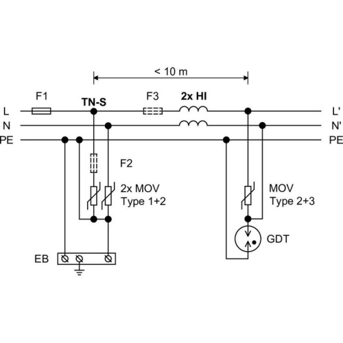 Rázová oddělovací tlumivka HI16 pro jmenovitý proud 16 A. Tato tlumivka, někdy též označovaná jako oddělovací impedance, zabezpečuje tzv. energetickou koordinaci mezi svodiči typu 1 a typu 2. ev. mezi svodiči typu 2 a typu 3 podle norem ČSN EN 62305 a ČSN EN 61643-11 ed. 2 tam, kde není mezi nimi zajištěna dostatečná vzdálenost (týká se případů, kdy v jednom rozvaděči jsou umístěny 2 následné stupně). Pokud energetická koordinace ochran není dodržena, vzniká určitá pravděpodobnost poškození svodičů některého stupně ochranné kaskády prostupujícím impulzem bleskového proudu. Jestliže mezi dvěma následnými stupni je alespoň 5 m vedení (týká se případů, kdy dva následné stupně ochrany jsou ve dvou rozvaděčích) je možno impedanci tohoto úseku vedení považovat za dostatečnou.