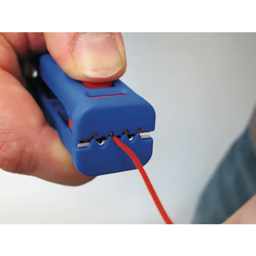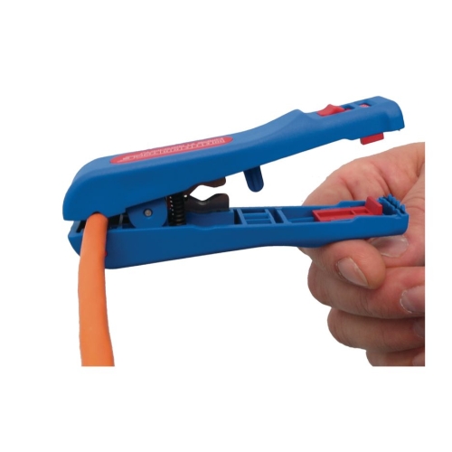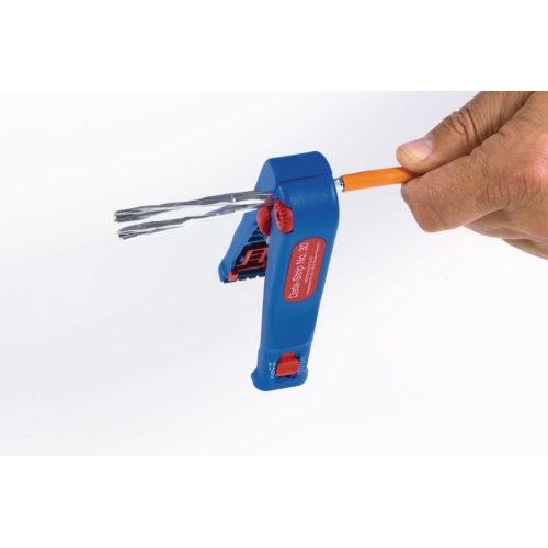 Kleště pro odpláštění a odizolování datových a síťových kabelů včetně boční čepele Vnitřní nůž může být nastaven na tloušťku izolace Pracovní rozsah: 0,05 – 0,5 mm² 4 – 10 mm Ø odizolování vodičů a pletených drátů např. telefonních linek 0,2 – 0,8 mm Ø jednotlivých žil Precizní odizolování s nastavitelnou délkou dorazu (3,5-14 mm) Integrovaný, dobře přístupný boční břit ke střihání vodičů až do Ø 8 mm Odstranění vnější izolace na datových kabelech ##VIDEO:https://www.youtube.com/embed/Pe-0_iuDy40##