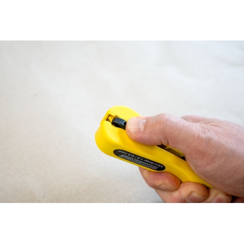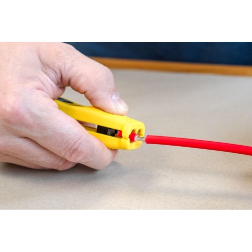 S odizolovačem Mini-Solar 1,5/2,5 mm² lze snadno a rychle odizolovat všechny běžné solární kabely. Ruční nastavení hloubky řezu není nutné. Integrovaný délkový doraz (od 6 do 28 mm) je vhodný pro odizolování solárních kabelů o průřezu 1,5 nebo 2,5 mm². Nástroj vyztužený skleněnými vlákny má navíc snadno přístupnou boční čepel pro kabely do 10 mm². Při použití odizolovače se během odizolování vytvoří přesný řezný vzor. Kromě toho lze Mini-Solar 1,5/2,5 mm² aretovat pro úsporu místa při skladování. ##VIDEO:https://www.youtube.com/embed/ttDUHqHm7LA##
