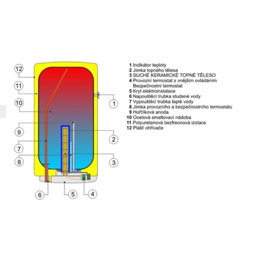 Kupte si kvalitní bojler od oblíbené české firmy DZ Dražice s objemem 125 litrů. Tento elektrický akumulační ohřívač je určený pro zavěšení na zeď. Ohřev zajišťuje keramické topné těleso ovládané provozním termostatem a jištěné bezpečnostním termostatem. Bojler umožňuje přípravu teplé užitkové vody v objektech s možností využití levnějšího nočního proudu. Specifikace bojleru DZ Dražice OKCE 125 2,2kW, 1194024 Zásobníkový bojler z řady OKCE ohřívá vodu v teplotě 5–74 °C a má příkon 2,2 kW. Spotřeba v celodenním pohotovostním režimu dosahuje 6,59 kWh. Stupeň krytí je IP44. Vodorovné rozteče kotevních šroubů (450 mm) výrobce zachovává po celou dobu historie výroby stejné pro snadnou výměnu vysloužilých ohřívačů. Kromě ohřívačů vody nabízíme i další topnou a regulační techniku, jako například topná tělesa, přímotopy a sálavé infrapanely či akumulační kamna. Rozměry ohřívače jsou: objem 125 l, výška 1067 mm a šířka 524 mm. Technické detaily ohřívače vody DZ Dražice Ohřívač vody bojler DZ Dražice OKCE 125 2,2kW je uzpůsoben na napětí 230 V a jmenovitý výkon 2,2 kW. Doba ohřevu z 10°C na 65°C: 195 min. Max. provozní tlak 6 bar. Připojovací průměr studené vody 3/4″ (20). Připojovací průměr teplé vody 3/4″ (20). Krytí (IP) IP44. Kapacitní profil M. Třída energetické účinnosti C. Vždy se řiďte postupem od výrobce. Zásahy do elektroinstalace provádějte jen tehdy, jste-li k takovému úkonu oprávněni. V opačném případě přenechte instalaci na odborníkovi s příslušným certifikátem. Certifikáty výrobku Ohřívač vody bojler DZ Dražice OKCE 125 2,2kW splňuje příslušné normy ČSN. O společnosti DZ Dražice Družstevní závody Dražice-Strojírna s.r.o. jsou největším výrobcem ohřívačů vody v České republice s dominantním podílem na trhu přesahujícím 50 %. Historie firmy sahá až do roku 1900. Nakupujte elektrické ohřívače DZ Dražice a další příslušenství na našem e-shopu.