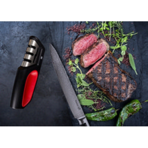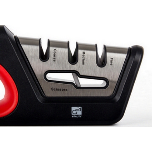 Univerzální nástroj k ostření nožů i nůžek pro časté použití. 3 druhy zrnitosti pro hrubé broušení, jemné broušení a přesné broušení kuchyňských nožů a nůžek. Ergonomická rukojeť, bezpečné a snadné použití.