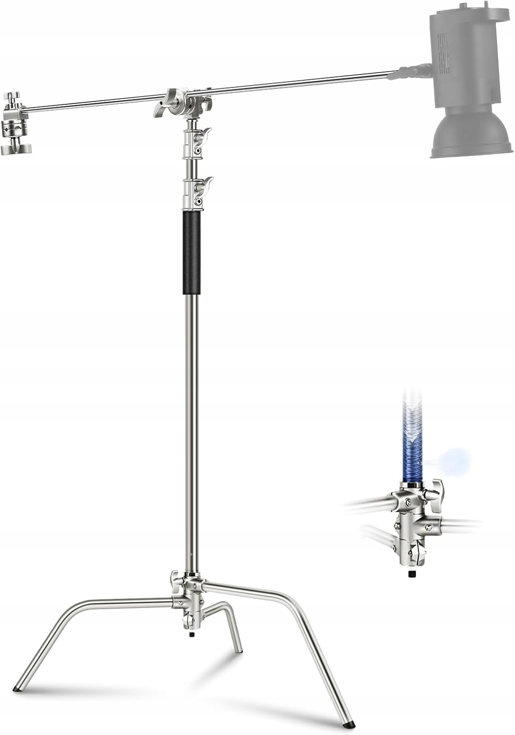 Stativ pro lampy C-Stand Neewer.Vlastnosti produktu:Materiál: 100% nerezová ocelMaximální výška: 10,8 stopy / 330 cmMinimální výška: 158 cmDélka prodlužovacího ramene: 128 cmNosnost: 8 kg (prodlužovací rameno), 20 kg (střední sloupek)Vyroben z nerezové oceli odolné proti korozi a trvanlivé, může chránit osvětlovací stojan před znečištěním vzduchu a vystavením soli.Gumová podšívka zajišťuje příjemný pocit a zabraňuje klouzání během pohybu.3 nohy dole jsou rozmístěny pod úhlem 120 stupňů, díky čemuž je zařízení stabilnější.Výšku středového sloupku stojanu lze nastavit v rozmezí od 158 cm do 320 cm, což poskytuje více různých možností fotografování. 3 nohy ve spodní části jsou rozloženy na 120 stupňů, díky čemuž je zařízení stabilnější.Kondice produktu:novýoriginální balení