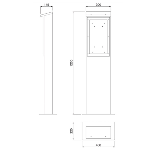 Zásuvkový pilíř v lakovaném provedení, pro osazení zásuvkové rozvodnice řady BLOCK 4 firmy SCAME. Barva laku pilíře RAL 7016, přechodový rám kolem rozvodnice RAL 7035. Pro variabilitu dodáváno bez zásuvkové rozvodnice. Specifikace pilíře pro zásuvkové…