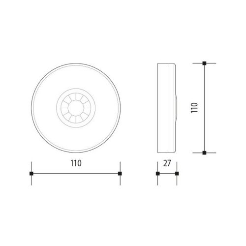 Stropní pohybový PIR senzor s detekčním úhlem 360° PIR senzor reaguje na slabé infračervené záření vycházející z lidského těla. Pokud se osobapohybuje v dosahu senzoru, světlo se rozsvítí. Po opuštění oblasti snímání se světlo automaticky vypne. SENS – Dosah – max. 4m TIME – Možnost nastavení času (zpoždění vypnutí) v rozsahu 10sec až 15min LUX – Možnost nastavení soumraku (světelné citlivosti) v rozsahu 3-2000lx Max zátěž: žárovka – max 1000W zářivka – max 500W LED 250W