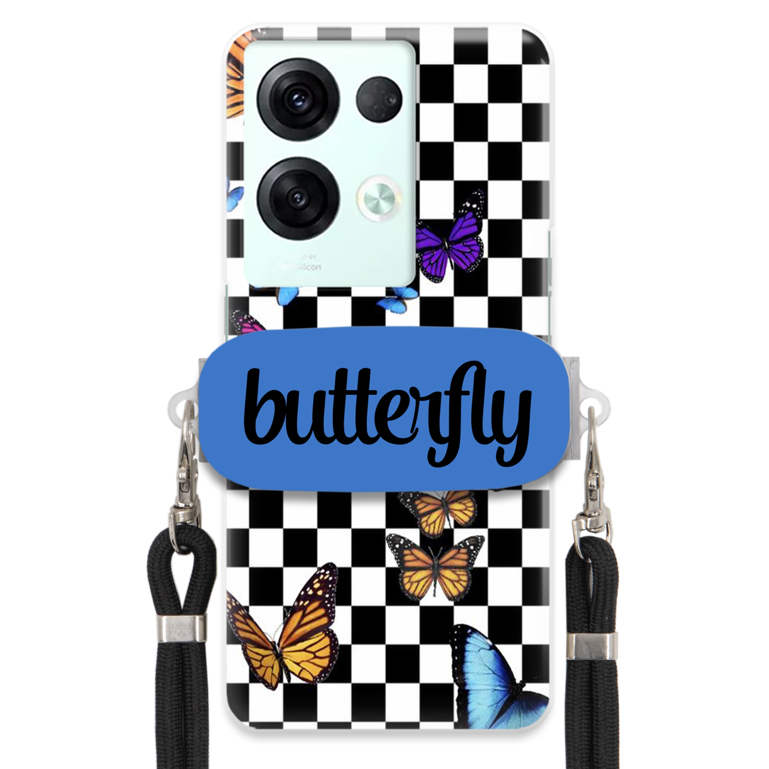 Součástí balení je černé, pevné vodítko s kovovými úchyty. Ideálně se hodí na cesty, při procházkách nebo nakupování – váš telefon bude vždy v bezpečí a na dosah ruky! 📱🔗pouzdro na telefon s motýlem | pouzdro s držákem na motýla | pouzdro s šachovnicovým vzorem | pouzdro s motýlem | pouzdro na popruh na krk | obdélníkové pouzdro s držákem | pouzdro s motýlím nápisem | popruh na telefon | módní pouzdro 2025 | ochranné pouzdro se vzorem