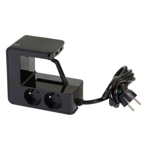 Připínací prodlužovací přívod, zásuvka 4x2. P+T, nabíječka USB A+A, podsvětlené tlačítko vyp/zap, kabel 1,5m, černá