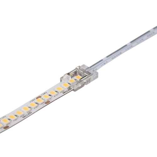 Připojovací konektor jednobarevných LED pásků šíře 8 mm, 2 piny. Konektor využijete ke snadnému propojení LED pásků s řízením, nebo napájecími zdroji s výstupní svorkovnicí. Konektor lze použít na LED pásky s jakýmkoli počtem LED/m, pásek se zasune do konektoru a konektor zafixuje kleštěmi. Doporučujeme pro max. proud 3,5 A, pro větší proudy je třeba vodiče k LED pásku připájet. Rozměry plastové části: 9,6 (š) x 15,6 (d) x 3,3 (v) mm, celková délka cca 160 mm. Kabel: barva červená, černá, velikost AWG20/0,5 mm².