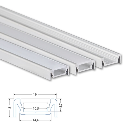 Kvalitní hliníkový profil s originálním difuzorem Rozměry průřezu tohoto hliníkového profilu jsou cca 19 x 8 mm. Do tohoto hliníkového profilu lze umístit LED pásek o maximální šířce 10 mm. Povrch tohoto hliníkového profilu je…