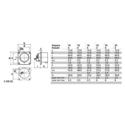 CEE přívodka vestavná přímá, Quick-Connect16A 5p (3P+N+PE) 400V (200/346 do 240/415V~) 6h IP44 frekvence: 50 a 60Hz kód barvy: červená RAL 3000 kontakty: nosič kontaktů je vyroben z polyamidu, kontakty jsou vyrobeny z mosazi maximální průřez vodiče: 2,5 mm2materiál krytu: polyamid způsob připojení: bezšroubové pružinové klecové svorky barva: kryt červený rozměry: výška 75 mm, šířka 75 mm, hloubka 96 mm rozměr příruby: svisle 75 mm, vodorovně 75 mm rozteč montážních otvorů: vodorovně 60 mm, svisle 60 mm další technické vlastnosti:bezšroubové připojení vodičů QUICK-CONNECT je ověřený, trvanlivý, bezpečný a zcela bezúdržbový systém odolný proti nárazům, vibracím a výkyvům teplot. QUICK-CONNECT s optimálně nastaveným přítlakem svorky na připojovaný vodič zcela eliminuje nedostatky šroubových spojení (možnost přetažení, nebo nedotažení šroubků, slaněné vodiče není třeba ukončovat dutinkami)barevné označení vstupů, pro správné zapojení jednotlivých vodičů (dodržení sledu fází u třífázové elektrické soustavy)