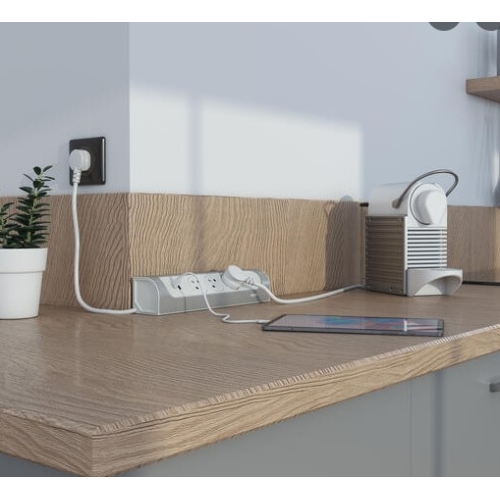 521 KčProdlužovací kabel 1m rohový blok 3zásuvky s USB A+C Legrand 49406 bílá/hliník