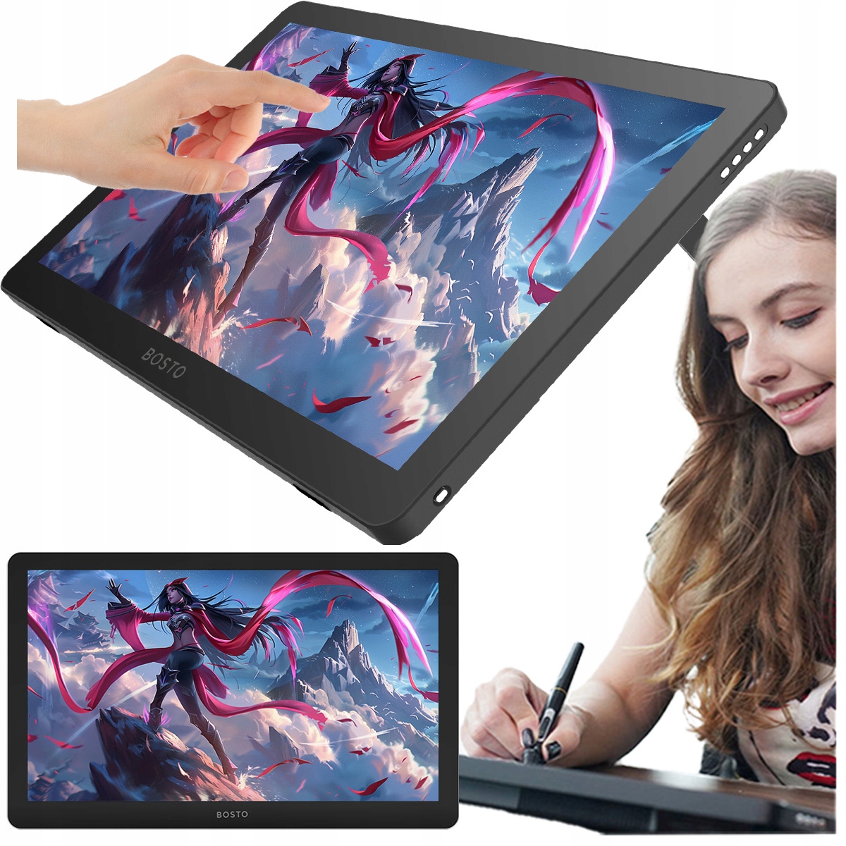 Profesionální grafický tablet Bosto BT-19. HDT(P) s dotykovým LCD displejem 1920×1080 nabízí dokonalou přesnost a kontrolu při tvorbě digitální grafiky. Ideální pro umělce, návrháře a grafiky.