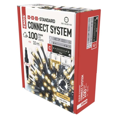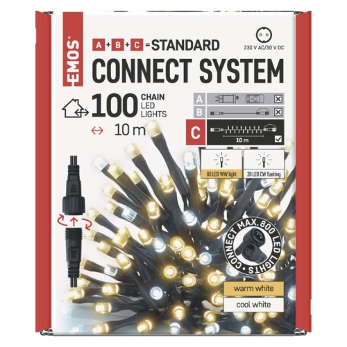 154 KčPropojovací vánoční řetěz bez zdroje EMOS Connecting D1AN02 100LED 10m teplá/studená bílá blikající