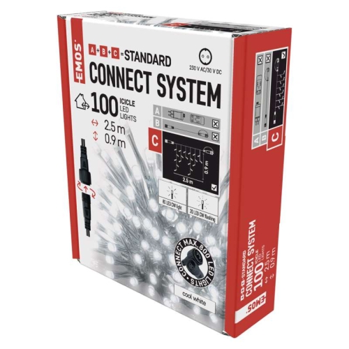 109 KčPropojovací vánoční řetěz bez zdroje EMOS Connecting D1CC02 ZY2001 100LED krápníky 2,5×0,9m studená bílá blikající