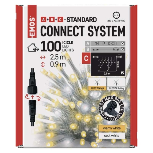 280 KčPropojovací vánoční řetěz bez zdroje EMOS Connecting D1CN01 ZY2002 100LED krápníky 2,5×0,9m studená/teplá blikající