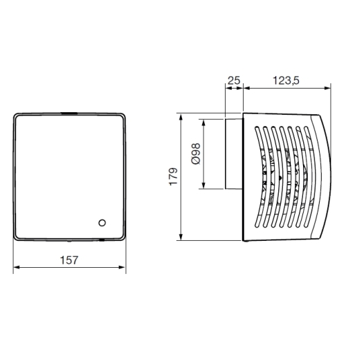 Radiální ventilátor pro odsávání koupelen/WC Ventilátor je v provedení s nastavitelným časovým doběhem 5 – 25 minut. Skříň Skříň je z nárazuvzdorného plastu, barva je bílá. Skříň je určená k montáži na stěnu. Ve výtlaku ventilátoru je zpětná klapka. Oběžné kolo Oběžné kolo je radiální, plastové s dopředu zahnutými lopatkami. Oběžné kolo je staticky a dynamicky vyvážené. Motor Motor je asynchronní s kotvou nakrátko a stíněným pólem. Motor je vybaven ochranou proti přehřátí. Maximální provozní teplota okolí je 40 ˚C. Motor má kluzná ložiska. Krytí IPX2. Svorkovnice Svorkovnice je přístupná po sejmutí čelní mřížky a víka svorkovnice, připojení pod omítkou nebo kabelem na omítce. Svorkovnice obsahuje odlehčovací sponu proti vytržení kabelu. Regulace otáček Regulace otáček se provádí elektronickým regulátory otáček změnou napětí. Montáž Montáž bez omezení horizontálně nebo vertikálně pomocí papírové montážní šablony, která je součástí dodávky. V dodávce jsou i hmoždinky a šrouby. Pokyny Ventilátory jsou vhodné pro relativně dlouhé vzduchovody s větší tlakovou ztrátou nebo k odvětrání přímo přes stěnu. Ventilátory lze použít pro větrání v bytové výstavbě, ve spojení s hygrostatem HIG 2 nebo s hygrostatem kombinovaným s termostatem pro odvětrání vlhkých prostor.