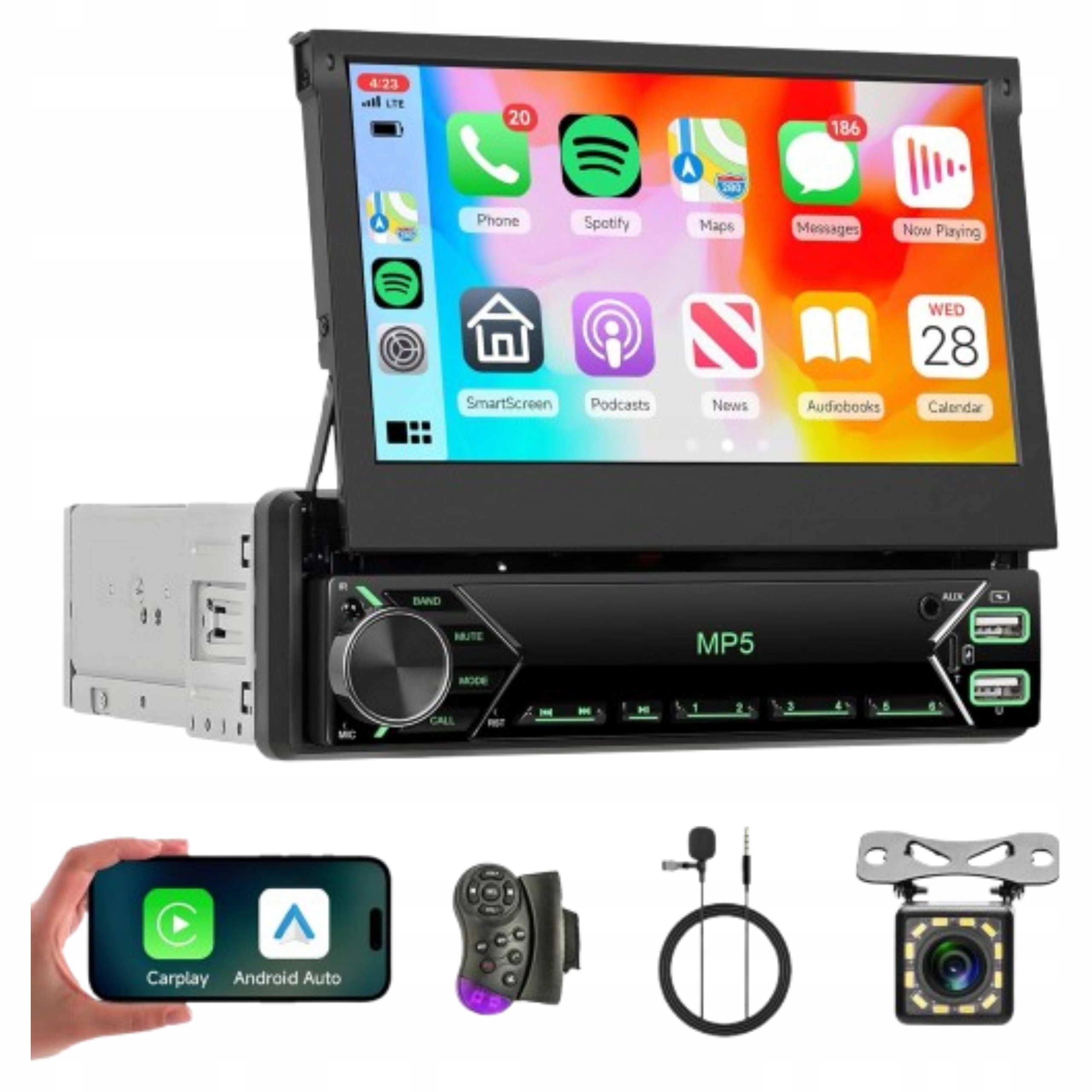 Rádio do auta 1 DIN CarPlay Android Auto Bluetooth USB couvací kameraMODERNÍ AUTORÁDIO S VÝSUVNOU OBRAZOVKOU 7″✅ Toto bezdrátové autorádio 1 DIN je kombinací moderního designu s pokročilou technologií. Díky CarPlay a Android Auto můžete využívat mapy, hudbu, zprávy a aplikace bez nutnosti sahat po telefonu.✅ NEJDŮLEŽITĚJŠÍ FUNKCE:✨ Bezdrátové CarPlay a Android Auto – ovládání telefonu bez kabelůVýsuvný dotykový displej 7“ – přehledný a moderní displej🎵 Bluetooth – přehrávání hudby a vedení hovorů bez použití rukou🔌 USB port a slot pro SD kartu – přehrávejte multimédia z různých zdrojů📹 Obsluha couvací kamery – bezpečné parkování za všech podmínek🎚 Vestavěný ekvalizér – perfektní přizpůsobení zvuku podle vkusu🌍 Navigace po telefonu – pohodlné vedení do cíle✨ PROČ TO STOJÍ ZA TO?Univerzální přizpůsobení pro většinu automobilů s výklenkem 1 DINIntuitivní dotykové ovládáníZlepšení komfortu a bezpečnosti jízdyMožnost přehrávání filmů a hudby ve vysoké kvalitě✨ Proměňte své auto v moderní multimediální centrum – bez drahých úprav!⚠ Upozornění:Nepřeměňuje napětí.Ujistěte se, že vaše zařízení podporuje napětí v rozmezí 100 až 240 V.🛒 Klikněte na „Koupit nyní“ a užijte si moderní funkce ve svém autě už zítra! Je to nejlepší volba pro lidi, kteří chtějí kombinovat pohodlí, funkčnost a styl.