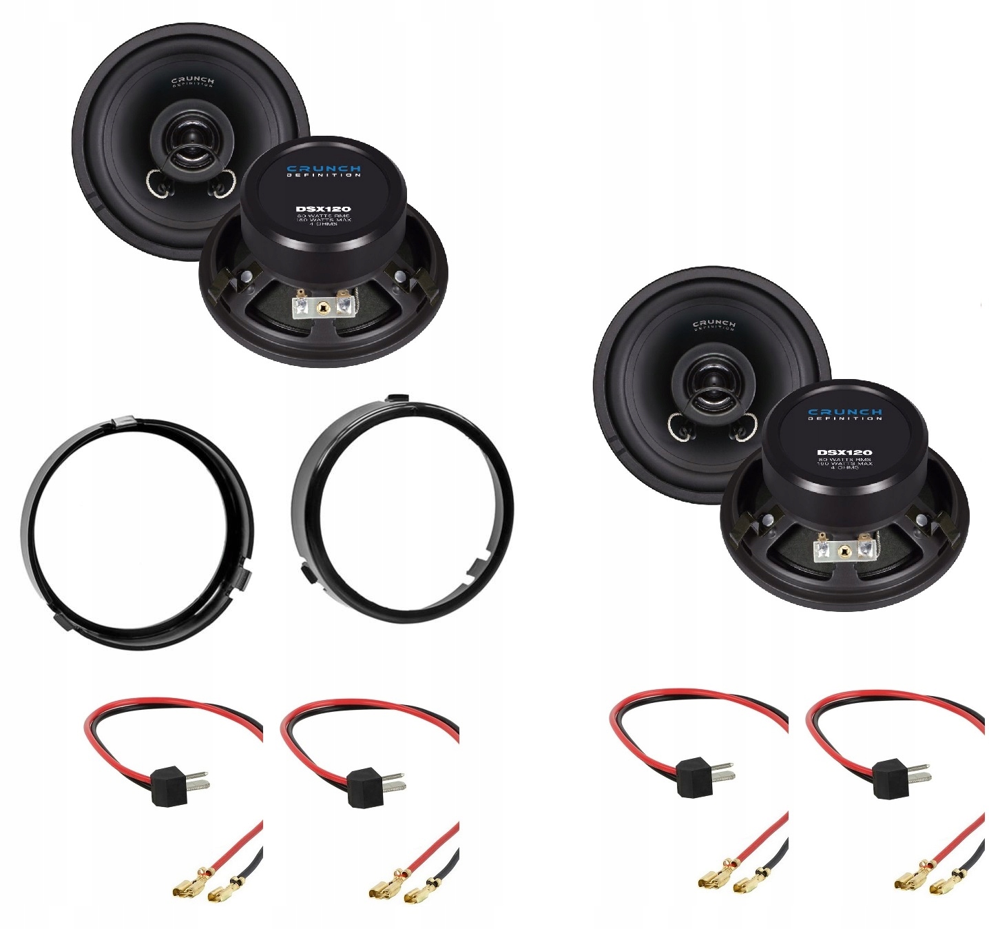 Protože jsou určeny jako náhrady za reproduktory montované z výroby nemají mřížku součástí balení.TECHNICKÉ ÚDAJE REPRODUKTORŮ:Typ reproduktoru: koaxiální dvoupásmovýPrůměr 120 mmRMS výkon 80 WVýkon max 160 WImpedance 4 OhmMontážní hloubka 55 mmPrůměr montážního otvoru 112 mmSoučástí balení:CRUNCH DSX120 x4PCSZÁRUČNÍ LIST PLORIGINÁLNÍ KRABIČKAADAPTÉRY REPRODUKTORŮ 4KSDISTANČNÍ REPRODUKTORY ABS 2KS ZADNÍ POLICEKOMPATIBILITA:PŘEDNÍ PODSKLO + ZADNÍ POLICEMercedes W124 Sedan 11/1984 -> 06/1993Mercedes E-Klasse W124 Sedan 07/1993 -> 08/1995TECHNICKÉ ÚDAJE VZDÁLENOSTÍ:Místo montáže: zadní policeReproduktor: 120 mm STISKACÍMontážní výřez: 110,50 mmVnější kroužek: Ø 127,50 mmVýška kroužku: 27 mm