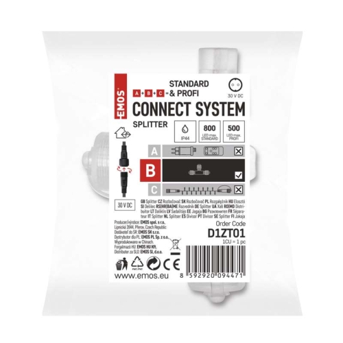 Rozbočovač D1. ZT01 ZY2276 je rozšířením řady světelných instalací EMOS Connecting system. Se skvělými instalacemi EMOS Connecting docílíte kompaktního osvětlení velkých ploch venku i v interiéru. Specifikace rozbočovače EMOS Connecting ZY2276 pro spojovací LED vánoční řetězy,…