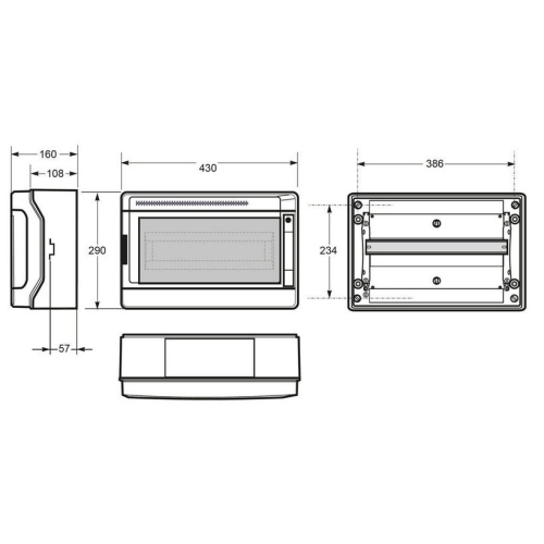 Plastová prostorná rozvodnice ve vyšším v krytí IP65 na povrchovou montáž: FAMATEL ACQUA PLUS 39018 IP65, 1x18mod., šedá/kouřové okénko Hlavní přednosti: Dostatek prostoru pro kabeláž Odnímatelný rám s DIN lištou pro jednoduchou instalaci Samotěsnící membránové průchodky PE/N svorkovnice součástí Dostatek prostoru pro kabely Bezhalogenový materiál (ABS / polykarbonátová dvířka) Možnost osazení kovovým zámkem Plastové rychlošrouby (plombovatelné) Další popis: Plastová rozvodnice ACQUA PLUS 39018 ve vyšším krytí IP65, rozměry: 285x430x150mm (výška x šířka x hloubka), prostor pro kabeláž pod DIN lištou: 57mm, 1x18mod.(TE), IK08, plastová, materiál ABS, zkouška žhavou smyčkou 650°C, bezhalogenová a UV odolná, montáž na povrch, barva: světle šedá, rozsah teplot -25°C +85°C, aplikované normy: EN 62208, balení: 1ks (krabice), polykarbonátová průhledná dvířka, PE svorkovnice součástí (10x 10mm2 a 10x16mm2) / N svorkovnice součástí (10x 10mm2 a 10x16mm2), předlisované otvory zaslepené gumovou membránovou průchodkou (stačí propíchnout) – kompatibilní s klasickými kabelovými vývodkami (vrchní strana: 2×20, 8×25, 1×35; spodní strana: 2×20, 8×25, 1×35), schopnost rozptylu tepla: 36W, dokoupitelné příslušenství: kovový zámek 3900.