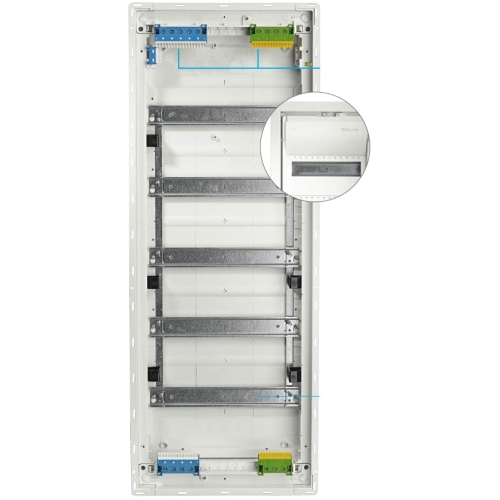 Rozvodnice zapuštěná volta, 5-řadá, 60 + 10 modulů, bezšroubové svorky Hlavní přednosti: Více prostoru V bocích skříně jsou integrovány příchytky pro vodiče. Díky změně konstrukce, přizpůsobené snadnému zapojení vodičů a kabelů, nabízí rozvaděč o 30…