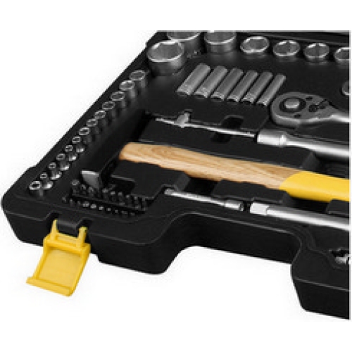 1x – Kombinované kleště: 7″ 1x – Kleště s dlouhými čelistmi: 6″ 1x – Kleště s posuvným kloubem: 10″ 2x – Šroubovák:(-)(+)6×100 1x – Rukojeť pro nástrčkové klíče 8x – Otevřený stranový klíč: 6×7,8×9,10×11,12×13,14×17,18×19,20×22,24×27 mm 1x – Nůž 18 mm se 3 břity 1x – Měřicí pásmo 5MX16FT 16x – Nástrčkové klíče 1/2″: 10,11,12,13,14,15,16,17,18,19,21,22,24,27,30,32 mm 2x – Rukojeť s ráčnou s naklápěcí hlavou: 1/4“ a 1/2″ 2x – Nástavec k nástrčkovému klíči 1/2″: 5″ a 10″ 1x – 3cestný nástavec: 1/2“(M) x 3/8″(F) 2x – Univerzální kloub: 1/4“ a 1/2″ 2x – Nástrčkový klíč na zapalovací svíčky 1/2“: 16 a 21 mm 12x – Nástrčkové klíče 1/4“: 4;4,5;5;5,5;6;7;8;9;10;11;12;13 mm 1x – Spojovací člen 6x – Hluboká nástrčka 1/4“: 9,10,11,12,13 mm 1x – Nástavec k nástrčkovému klíči 1/4″: 3″ 1x – Posuvná tyč 1/4″ 1x – Kladivo 300 g 20x – Bity x 25mm s držákem 2x – PRŮBOJNÍK (ŠPIČÁK A PLOCHÉ DLÁTO)