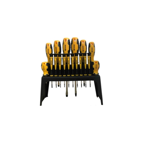 8 ks šroubováků plochých a křížových v CR-V kvalitě 10 ks malých šroubováků s točnou na ukazováček Držák upevnitelný na stěnu či nástěnnou desku
