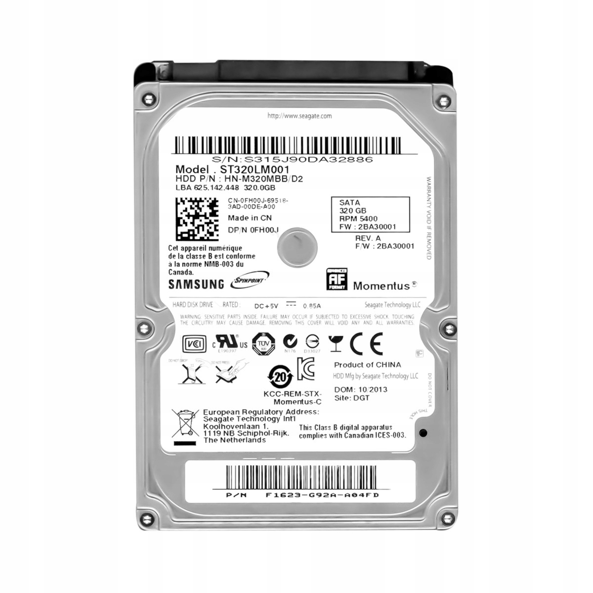 SAMSUNG HN-M320MBB/D2 320GB 5.4K 8MB SATA II 2.5“ ST320LM001