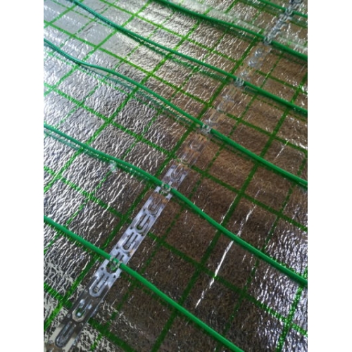 Separační fólie PETZ s hliníkovou vrstvou pro lepší rozložení tepla. Natištěný rastr umožňuje snadnější stanovení rozteče. Používá se pro instalaci topných kabelů pro podlahové vytápění. Kotvení topného kabelu pomocí upevňovací lišty nebo příchytek. Tloušťka 2 mm, šířka 1040 mm, balení návinu 25 m2.