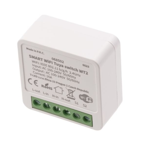 Chytrý spínač (switch) pro;zapínání a vypínání elektrických spotřebičů s podporou aplikace Tuya. Spínač je kompatibilní se aplikací Tuya a Smart life (nebo aplikacemi které z Tuya vychází), Amazon Alexa nebo Google Assistant, zároveň má spínač možnost připojit i fyzický vypínač, kterým lze spínač ovládat manuálně. Spínač lze zapojit jak k jednomu vypínači, tak také umožňuje schodišťové zapojení (2 křížové vypínače). Smart spínač lze vložit a ukrýt do elektrikářské krabičky a schovat za vypínače. Osvětlení tímto přijímačem můžete tedy zároveň ovládat: Telefonem nebo tabletem přes aplikaci Tuya nebo zařízení ECHO od Amazonu Vypínačemi Pro ovládání více okruhů je nutno použít jeden spínač na každý okruh a například v mobilní aplikaci nastavit oddělené ovládání. Nejčastější využití SMART spínače: Vzdálené ovládání – Spínejte na dálku spotřebiče zapojené do chytrého spínače. Můžete takto například spínat světla, topení, přímotopy apod. Tím například před Vaším příjezdem můžete vytopit Vaši chatu nebo chalupu. Spínání dle času – Můžete zapínat a vypínat vybrané spotřebiče ve Vámi zvolený čas. Nejčastěji využijete například při spínání světel, topení, filtrací apod. V praxi například můžete spotřebič nechat zapnout ve večerních hodinách a v ranních hodinách ho naopak nechat vypnout. Lze také například využít informací o západu a východu slunce a spínání propojit s těmito informacemi, které se každý den mění. Další automatizace – Můžete dále vytvářet automatizace dle Vašich představ. Spínání lze dále párovat například na různé změny teplot, propojit zásuvky s chytrými čidly (čidlo zaznamená pohyb a sepne vybranou zásuvku). U všech těchto automatizací můžete i tvořit skupiny spínačů a spínat je najednou. Specifikace spínače: Vstupní napětí 100-240VAC Proudové zatížení Max 16A Přenosová frekvence WIFI 2.4GHz 802.11 b/g/n Kompatibilní s aplikacemi Tuya, SMART LIFE, Amazon Alexa, Google Assistant Dosah Až 30m Rozměry 41 x 41 x 20mm Paměť posledního nastavení po odpojení napájení: ANO Stupeň krytí: IP20