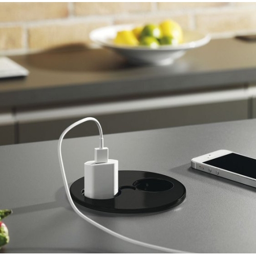 Elektro zásuvka Bachmann Twist s 2x USB nabíječkou matná černá 931.132 Německý výrobce Bachmann přišel s velmi žádanou novinkou TWIST zásuvky s USB nabíječkou. Jedná se o rychlonabíječky s výstupním proudem až 3,15A. Zápustná elektro zásuvka Bachmann Twist USB matná černá 931.132 se díky svému designovému vzhledu a kompaktních rozměrů hodí do všech typů místností (kancelář, kuchyň, obývací pokoj atd.) a také skvěle zapadne do moderního interiéru. Zásuvka je prostorově úsporná při instalaci do pracovní desky stolu nebo kuchyňské desky. Přívodní kabel je vyveden tak, aby hloubka instalace byla pouze 40 mm, tím je umožněna instalace i nad zásuvkami kuchyňské linky. Vrchní krycí část je několikanásobně lakovaná, aby bylo zabráněno poškození běžným používáním. Po stlačení středu a otočení krytu dojde k odkrytí dvou USB nabijecích portů a jedné zásuvky 230V, naopak při nepoužívání zásuvky ji jednoduše zakryjete a tím pádem neruší design pracovní plochy. Doporučujeme se také podívat na níže přiložené video montáže a způsobu otevírání. Součástí balení je 2 m napájecí kabel s přiloženou vidlicí do zásuvky k přišroubování na vyvedený kabel. Pro zásuvku Twist je potřebný montážní otvor o průměru 105 mm. Jaké jsou hlavní přednosti? z hlediska designu produkt oceněn: Red Dot Design, German Desing Award a další velmi malá instalační hloubka (40 mm), můžete umístit nad zásuvku do pracovní desky v kuchyni prostorově velmi úsporná zásuvka (HxØ: 42,5 × 115 mm) jednoduchá a rychlá instalace (také vhodná pro dodatečnou montáž) vybaveno 2x USB rychlonabíječkou a 1x zásuvkou 230V