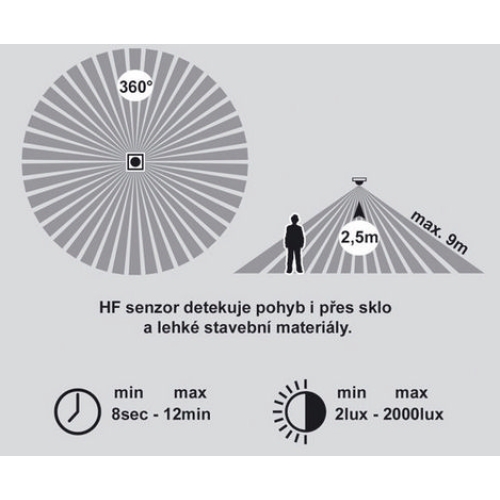 276 KčStropní a nástěnné svítidlo Ecolite VICTOR LED W131/EM/LED-4100 s HF senzorem a nouzovým modulem 18W IP44