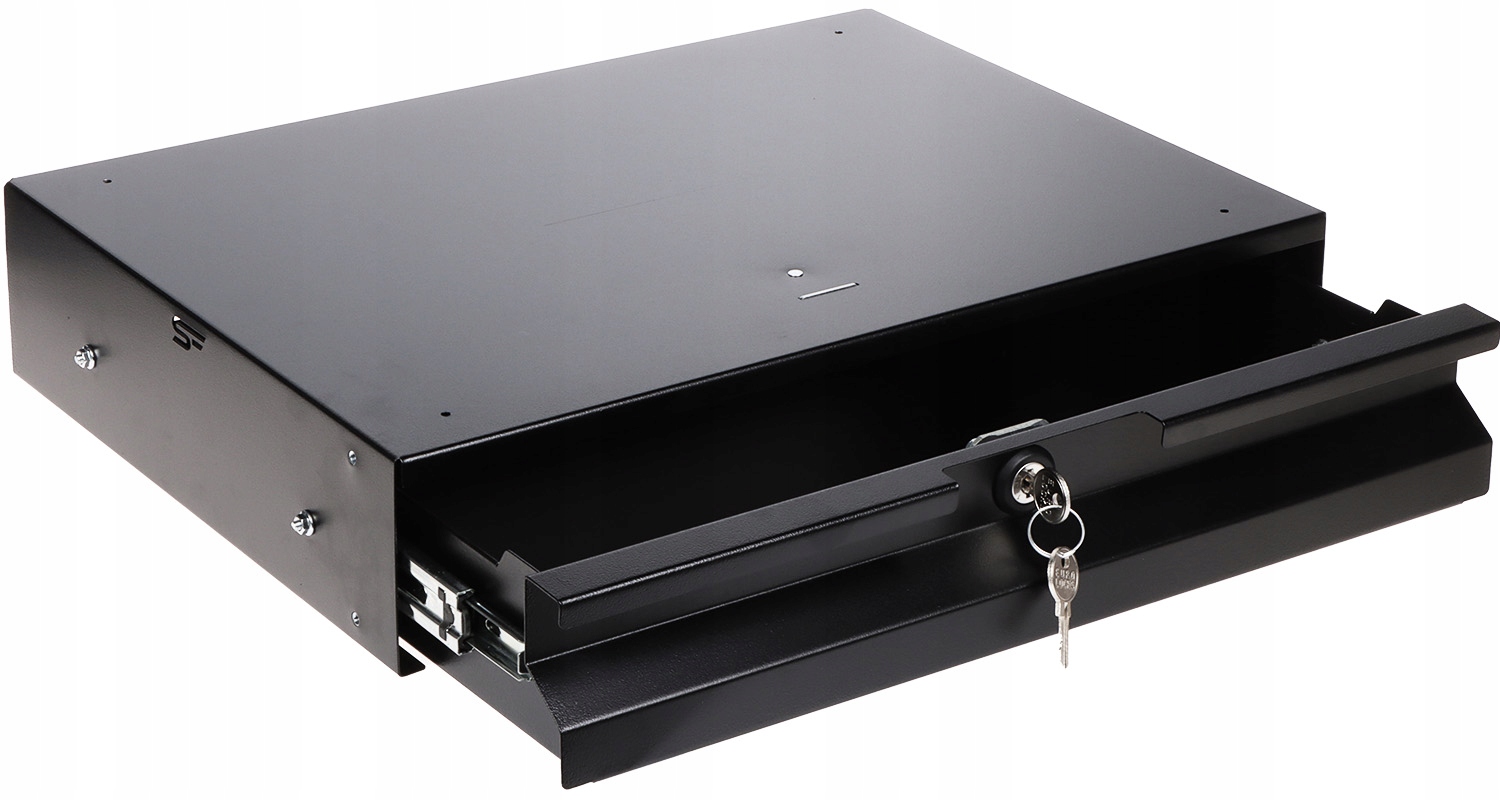 Šuplík Rack 19“ 2U 320mm Černá RD19-2U-320BKód zboží: RD19-2U-320B Šuplík do rackové skříně 19″, zabezpečená zámkem na klíč. Police RD19-2U-320B může sloužit k uložení dokumentů nebo drobného nářadí uvnitř rackové skříně. Nainstalovaný zámek účinně chrání obsah zásuvky před přístupem nepovolaných osob. Technické údaje: Šířka: 19 “ Výška: 2 U Hloubka: 320 mm Upevnění: šestibodové Nosnost: 30 kg Použití: RACK 450 mm RACK 600 mm RACK 800 mm Vybrané funkce: Polička se vysouvá do vzdálenosti 230 mm od předních montážních lišt Rozměry: 440 x 345 x 90 mm – RACK 19″, 2U Hmotnost: 3.66 kg