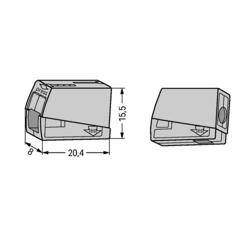 Svorka svítidlová WAGO 224-101, bezšroubová, šedá, pro připojení tuhého a laněného vodiče Možnosti připojení: Přívod vedení: Technologie připojení: PUSH WIRE® Pro vodič: 1 – 2,5 mm2; 14 – 12 AWG Délka odizolování: 9 – 11…