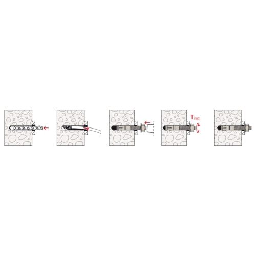 Svorníková kotva FBN II Ekonomická montáž pro flexibilní aplikaci do tlačené zóny betonu fischer svorníková kotva FBN II je ocelový upevňovací prvek pro hospodárné kotvení do tlačené zóny betonu. Výrobek vděčí za svou výjimečnou všestrannost dlouhému závitu a proměnlivé kotevní hloubce. Montáž lze provést předsazeným i průvlečným způsobem, a tak ji lze použít i pro distanční upevnění. Je vhodná k upevnění různých ocelových konstrukcí, konzolí, zábradlí, strojů, kabelových tras. Princip funkce / montáž Před montáží nastavte šestihrannou matici do optimální polohy (zarážecí čep vyčnívá asi 3 mm z šestihranné matice). Při působení utahovacího momentu dojde ke vtažení kuželového čepu do rozpěrného pouzdra a tím se čep ukotví do stěny otvoru. Vzhled hlavy umožňuje jednoduchou kontrolu ukotvení.