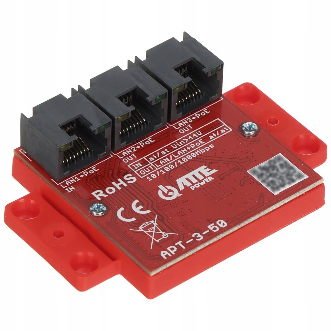 Napájení: 44 … 58 V DC – PoE (802.3af/at) / Passive PoE @ LAN 1 Příkon: < 0.3 W Hmotnost: 0.03 kg Rozměry: 73 x 51 x 21 mm Výrobce / Značka: ATTE Záruka: 3 roky
