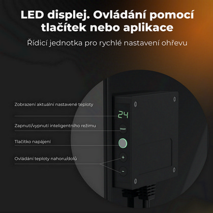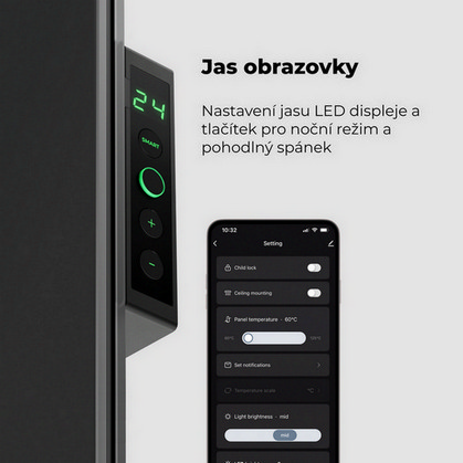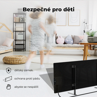 Ušetřete až 50 % na energiích s černým teplovzdušným INFRA konvektorem AENO GH4S AGH0004S! S výkonem až 700 W dokáže vytopit místnost do 30 m2 podle kvality zateplení místnosti. Ovládá se přes mobilní aplikaci skrze Wi-Fi. K tomuto typu INFRA konvektoru byl přidán LED displej pro větší pohodlí. Specifikace 700 W teplovzdušného konvektoru AENO GH4S s LED displejem, černá, 4AAGH1S Ušetřete s chytrým EKO úsporným topením AENO na nákladech na vytápění pomocí kombinované technologie infračerveného záření a konvekce, která šíří teplo v místnosti mnohem efektivněji. INFRA panelový ohřívač můžete pohodlně ovládat z jednoduché mobilní aplikace v češtině, která se dá ovládat i hlasem a skrze kterou lze nastavit následující funkce: Plánovač vytápění – naplánujete si, kdy panel začne topit (např. cestou domů z práce). Integrovaný termostat – umožňuje nastavit stálou teplotu v místnosti (0 – 40 °C), což přispívá k Vašemu tepelnému komfortu. Výpočet spotřeby energie – v aplikaci uvidíte spotřebu energie, podle které si můžete topení regulovat. Detekce náklonu – případně pádu se zařízení vypne. SMART topení AENO nainstalujete během několika minut. Pokud chcete zařízení postavit na zem, našroubujete přídavné nožičky na zadní část topení pomocí šroubů, na které nepotřebujete další nářadí. V případě přidání na stěnu použijete nástěnné držáky, které jsou součástí balení. Topení můžete nainstalovat na stěnu ve svislé i vodorovné poloze. Teplovzdušný konvektor AENO vyniká minimalistickým designem a lesklým sklem, což elegantně doplní každý interiér. Je vyroben v ultra tenkém provedení z vysoce kvalitního tvrzeného skla. INFRA panelový ohřívač AENO netopí ze zadní strany, pouze z přední. Povrchový ohřev zařízení dosahuje z bezpečnostních důvodů až do 60 °C, což je praktické zejména v domácnostech s dětmi, které si o něj tak nepopálí ruce. Nabízíme i další topnou a regulační techniku, jako například topné kabely, ohřívače vody, topná tělesa, akumulační kamna, termostaty a další. Rozměry teplovzdušného konvektoru AENO jsou (v x š x h): 365 x 1000 x 11 mm. Technické detaily teplovzdušného konvektoru AENO Černý teplovzdušný INFRA konvektor AENO GH4S 700 W AGH0004S LED displej Wi-Fi je konstruován pro napětí 230 V a je určen pro montáž na nožičky, nebo na stěnu, a to vodorovně i svisle. Hmotnost výrobku činí 8,7 kg. Provozní frekvence 2400-2483,5 GHz. Integrace Asistent Google, Amazon Alexa. Server Cloud. Integrace mikatermického oboustranného ohřívače. Typy ohřevu: infračervené záření – 75 %; konvekce – 25 %. IR úhel až 300° (v závislosti na místě instalace). IR vlnová délka 95-100 µm. Přípustný rozsah nastavení teploty panelu od 60 °C do +120 °C. Přípustný rozsah napětí 180-253 V (AC). Jmenovitý proud 3,0 A (ne více než 0,01 A v pohotovostním režimu). Současná ochrana 6,3 А. Napěťová ochrana 260 V. Teplotní ochrana panelu +135 °С. Stupeň ochrany pouzdra IP44. Inteligentní prémiový eko ohřívač AENOTM. Elektronický gyroskop vypnutí při převrácení. Provozní teplota 0 °C až +40 °C. Provozní vlhkost až 75 % relativní vlhkost (bez kondenzace). Skladovací teplota -20 °C až +70 °C. Vždy se řiďte postupem od výrobce. Zásahy do elektroinstalace provádějte jen tehdy, jste-li k takovému úkonu oprávněni. V opačném případě přenechte instalaci na odborníkovi s příslušným certifikátem. Certifikáty výrobku Teplovzdušný INFRA konvektor AENO GH4S 700 W AGH0004S LED displej Wi-Fi černý splňuje příslušné normy ČSN. O společnosti AENO Společnost AENO se věnuje vývoji a výrobě progresivních domácích přístrojů jako jsou např. ohřívače vzduchu – INFRA konvektory, čističky vzduchu a zvlhčovače. U nás si můžete prohlédnout INFRA konvektory AENO. ##VIDEO:https://www.youtube.com/embed/r7HNOJxHwsY##