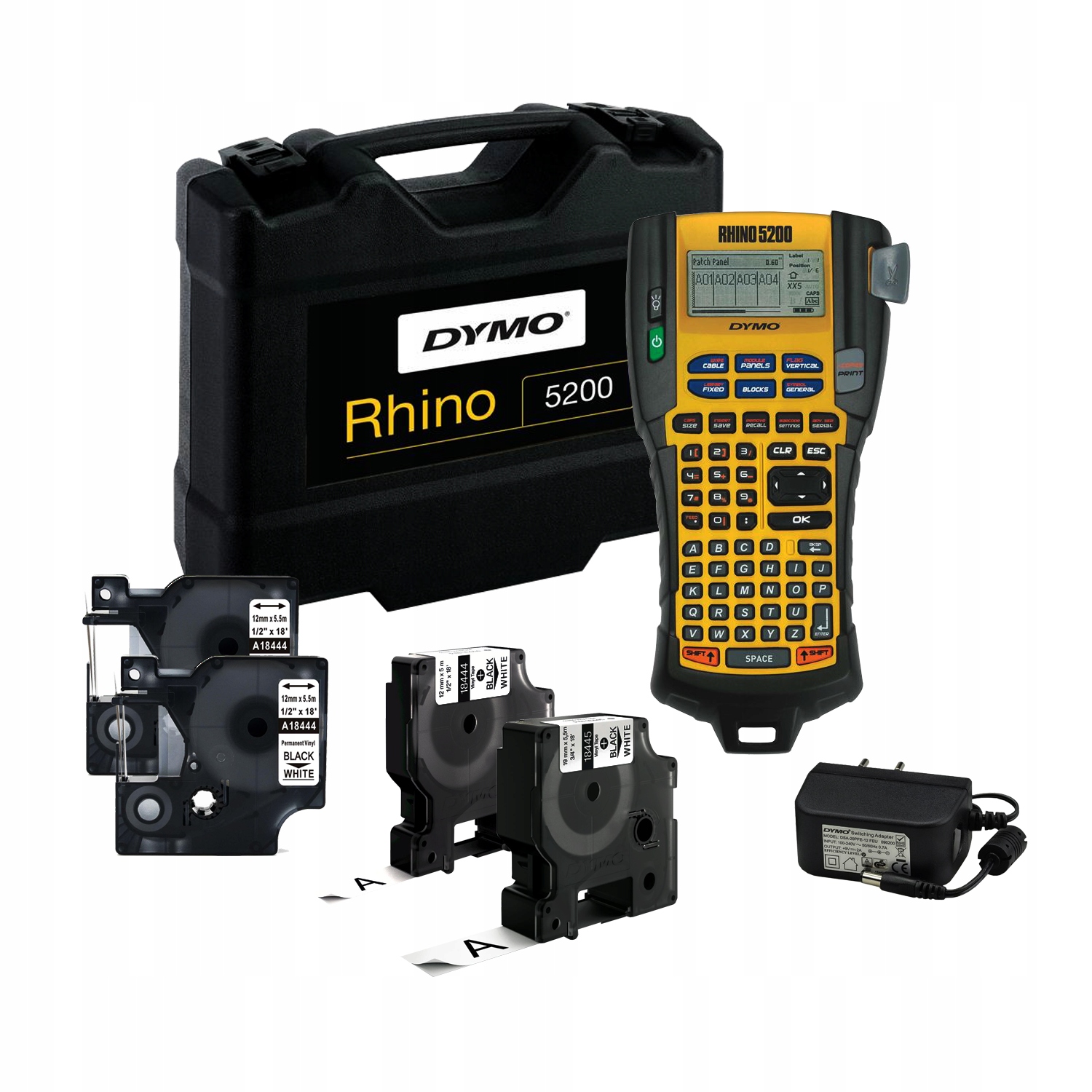 Tiskárna štítků RHINO 5200KufrKompatibilní napájecí zdroj18444 vinylová páska 12 mm bílá/černý originální potisk18445 vinylová páska 19 mm bílá/černý originální potisk2x páska 18444 vinylová 12 mm/5,5 m bílá/černý náhradní potiskFunkce a výhodyVýjimečné klávesové zkratky DYMO automaticky mění velikost, umístění a formát štítků pro kabely a vodiče, přípojky, automatické vypínače, připojovací desky, horizontální a pevné délky použití.Tisk na pásky D1, D1 RHINO – také na smršťovací trubičky do šířky kazety 19 mm.Předprogramovaná knihovna symbolů obsahuje průmyslové symboly, interpunkční znaménka, symboly měn a zlomky.Velký displej s prezentací mnoha štítkůVelký dvouřádkový displejPodsvícení usnadňující čteníIntegrovaná protiskluzová gumová rukojeťZapisování/vyvolávání více než 100 formátů štítkůTiskne proužkové kódy kódu 39 a kódu 128 na štítcích 19 mmPoužívá snadno oddělitelné štítky RHINO se silným lepidlem, vyrobené z 5 materiálůJe napájena 6 bateriemi AA (nejsou součástí balení) nebo volitelným, rychle se nabíjejícím lithium-iontovým akumulátorem. V zařízeních DYMO se doporučuje používat pouze alkalické baterie Duracell.Funkce automatického vypnutí prodlužuje životnost baterieRHINO 5200 je přenosná, cenově dostupná tiskárna štítků pro profesionály pracující v oblasti přenosu dat, elektrického, audio/video, bezpečnostního, servisního, stavebního a přenosového průmyslu, zde je sada obsahující bílou, pružnou nylonovou pásku o šířce 19 mm, bílou nylonovou pásku o šířce 12 mm, akumulátor, síťový adaptér a odolný kufr.