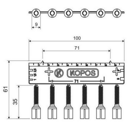 Trn nástavný KOPOS TN 97 Barva BÍLÁ Pro prodloužení středového trnu krycích víček,pro příliš zapuštěné krabice, kdy trn krycího víčka je krátký a nedosahuje do středového závitu elektroinstalační krabice. Trn je možné zkrátit na potřebnou délku, přiložené pravítko slouží k naměření rozteče 71 mm při montáži přístrojů do sdruženého rámečku, zářezy je možné použít jako měrku k identifikaci průřezů kabelů, 1 kus obsahuje plato 6 ks nastavovacích trnů