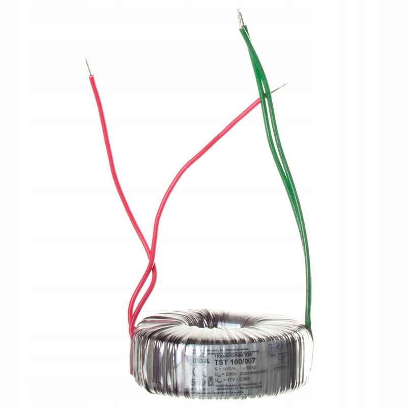 TST 100/007 17V-5,88A Síťový transformátor TST s konstrukcí a toroidním jádrem. Toroidní transformátor je transformátor, který se skládá ze dvou nebo více navinutých vinutí na společném jádře s toroidním tvarem. V porovnání s tvarovými transformátory se taková konstrukce vyznačuje: menšími ztrátami výkonu, nejmenším magnetickým rozptylem, nízkou hmotností a rozměry a také malou změnou napětí mezi volnoběhem a zatížením, nízkou odezvou rozptylu a také menší hladinou hluku. Jejich jednoduchá konstrukce zajišťuje velkou stabilitu, spolehlivost provozu a umožňuje transformaci velkých výkonů. Technické údaje: vinutí navinutá měděným drátem s dvojitou izolací v teplotní třídě F nebo H izolace z estrofolu vývody ve formě kabelů součástí balení: 1x upevňovací kovový kroužek, 2x gumová podložka Charakteristika: Jmenovité napětí primárního vinutí PRI U [V]: 230 V napětí sekundárního vinutí při zatížení SEC U [V]: 17 V maximální proud sekundárního vinutí SEC I [A]: 5.88 A výkon: 100 W délka vývodů: 150 mm test izolace: 4kV / 60s třída izolace: II tepelná třída: Ta40B (to40?C, izolace třídy B 130? C) stupeň ochrany: IP00 katalogová karta: 100/TOR 01-1 rozměry (ŠxVxH): 97 x 40 x 97 mm hmotnost: 1.1 kg Použití: napájení elektronických a energetických zařízení, v systémech průmyslové automatizace, v osvětlovací technice, a všech zařízení, která vyžadují napájení střídavým proudem.