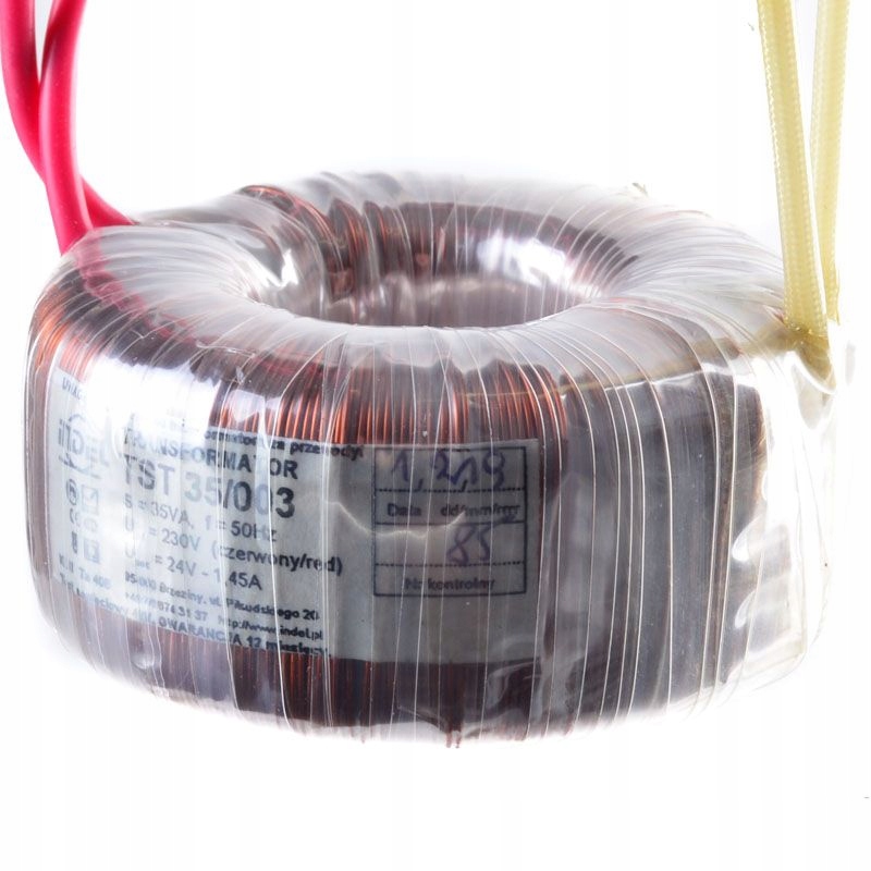 TST 35/003 24V-1.45ASíťový transformátor TST s konstrukcí s toroidním jádrem.Toroidní transformátor je transformátor, který se skládá ze dvou nebo více navinutých vinutí na společném jádře s toroidním tvarem. Ve srovnání s tvarovými transformátory se taková konstrukce vyznačuje: menšími ztrátami výkonu, nejmenším magnetickým rozptylem, nízkou hmotností a rozměry a také malou změnou napětí mezi volnoběhem a zatížením, nízkou odezvou rozptylu a také menší hladinou hluku. Jejich jednoduchá konstrukce zajišťuje velkou stabilitu, spolehlivost provozu a umožňuje transformaci velkých výkonů.Technické údaje:vinutí navinutá měděným drátem s dvojitou izolací v teplotní třídě F nebo Hizolace z estrofoluvývody ve formě kabelůsoučástí balení: 1x upevňovací kovový kroužek, 2x gumová podložkaCharakteristický:Jmenovité napětí primárního vinutí PRI U [V]: 230 Vnapětí sekundárního vinutí při zatížení SEC U [V]: 24 Vmaximální proud sekundárního vinutí SEC I [A]: 1.45 Avýkon: 35 Wdélka vývodů: 150 mmtest izolace: 4kV / 60střída izolace: IItepelná třída: Ta40B (to40?C, izolace třídy B 130? C)stupeň ochrany: IP00katalogová karta: 35/TOR 01-1rozměry (ŠxVxH): 75 x 32 x 75 mmhmotnost: 0.6 kgPoužití: