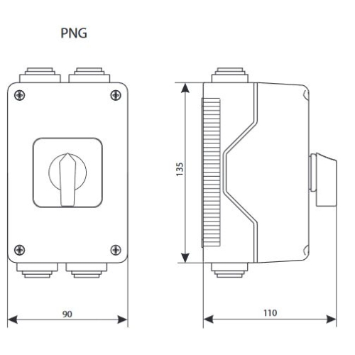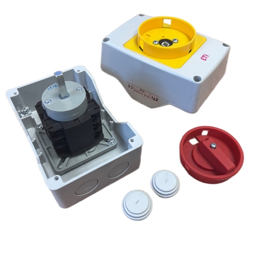 3-pólový univerzální nouzový ON-OFF přepínač v pouzdře Nouzový vypínač je elektrická část elektrického napájení a elektrických zařízení Ovládací rukojeť je červená v souladu se standardy a deska v zadní části je žlutá Výhody: dobrá schopnost zapínání a vypínání elektrická a mechanická vytrvalost malé rozměry Vačkové spínače značky ETI jsou v souladu s mezinárodními a národními standardy jako: IEC / EN 60947-3, VDE 0660, EN 60947 TS-3, BS 5419 atd. Součástí balení jsou dvě kabelové průchodky.
