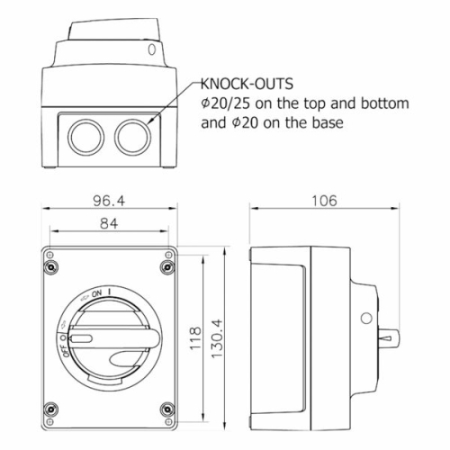 Výkon: 25 A (AC-23), 11 kW (400, 415 V) 25 A (AC-23), 22 kW (690 V) 25 A (AC-22 / 400, 415, 690 V) 40 A (AC-21 / 400, 415, 690 V) Specifikace: – IP66 – pro skříně (kryty) typu U2, U3, U4 – Samozhášivý materiál – Široký rozsah provozních teplot – Uzamykatelná páka až třemi zámky – Blokování s uvolňovacím mechanismem – Výborné izolační vlastnosti – UV stabilní – Odolné vůči různým chemikáliím – Testováno dle normy IEC 60947-3 Rozměry (včetně páky): Výška: 130,4 mm / šířka: 96,4 mm / hloubka: 106 mm ##VIDEO:https://www.youtube.com/embed/7HV7LFbeHWs##