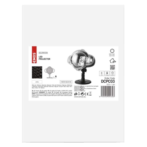 Kupte si LED dekorativní projektor EMOS DCPC03 ZY2192 a vytvořte s ním na stěně vašeho domu efekt padajících vloček. Umístěte projektor 5-15 metrů od plochy, kterou chcete osvítit, a pak už se jen kochejte krásnými světelnými efekty. LED projektor vám pomůže vytvořit neopakovatelnou vánoční atmosféru. Specifikace dekorativního LED projektoru EMOS ZY2192 padající vločky, DCPC03 LED dekorativní projektor Emos s efektem padajících vloček má příkon 4 W a díky vyššímu stupni krytí IP44 je vhodný i pro venkovní použití. Podívejte se na všechny produkty Connecting System. K sestavení instalace potřebujete transformátor (napájecí zdroj), rozbočovače a prodlužovací kabely, světelné řetězy. Nabízíme i další druhy vánočního osvětlení. Najdete u nás široký výběr klasických vánočních řetězů i další vánočních dekorací včetně vánočního venkovního osvětlení s vyšším stupněm ochrany. Rozměry řetězu jsou: délka 10 m. Technické detaily kabelu EMOS Connecting Dekorativní LED projektor padající vločky EMOS DCPC03 ZY2192 je určen pro jmenovité napětí 230 V. Příkon 4 W. Krytí IP44. Vždy se řiďte postupem od výrobce. Zásahy do elektroinstalace provádějte jen tehdy, jste-li k takovému úkonu oprávněni. V opačném případě přenechte instalaci na odborníkovi s příslušným certifikátem. Certifikáty výrobku Vánoční osvětlení EMOS DCPC03 ZY2192 LED dekorativní projektor padající vločky splňuje příslušné normy ČSN. O společnosti EMOS Ryze česká společnost EMOS spol. s. r. o. je jednou z největších elektro firem v České republice. Založena byla roku 1991 a na trhu tedy slaví úspěchy již přes 30 let. Centrála společnosti sídlí v Přerově, odkud také zajišťuje zákaznický servis. Společnost EMOS pak přímo působí i v dalších zemích: Slovensku, Polsku, Slovinsku a Maďarsku, obchodně však pokrývá až 26 zemí. Je taktéž výhradním dovozcem zboží hned několika světových značek. Od společnosti EMOS si u nás můžete pořídit například kvalitní nářadí, LED žárovky, montážní svítidla, koaxiální či HDMI kabely nebo například prodlužovací kabely. ##VIDEO:https://www.youtube.com/embed/OK_SLPUSZ8g##